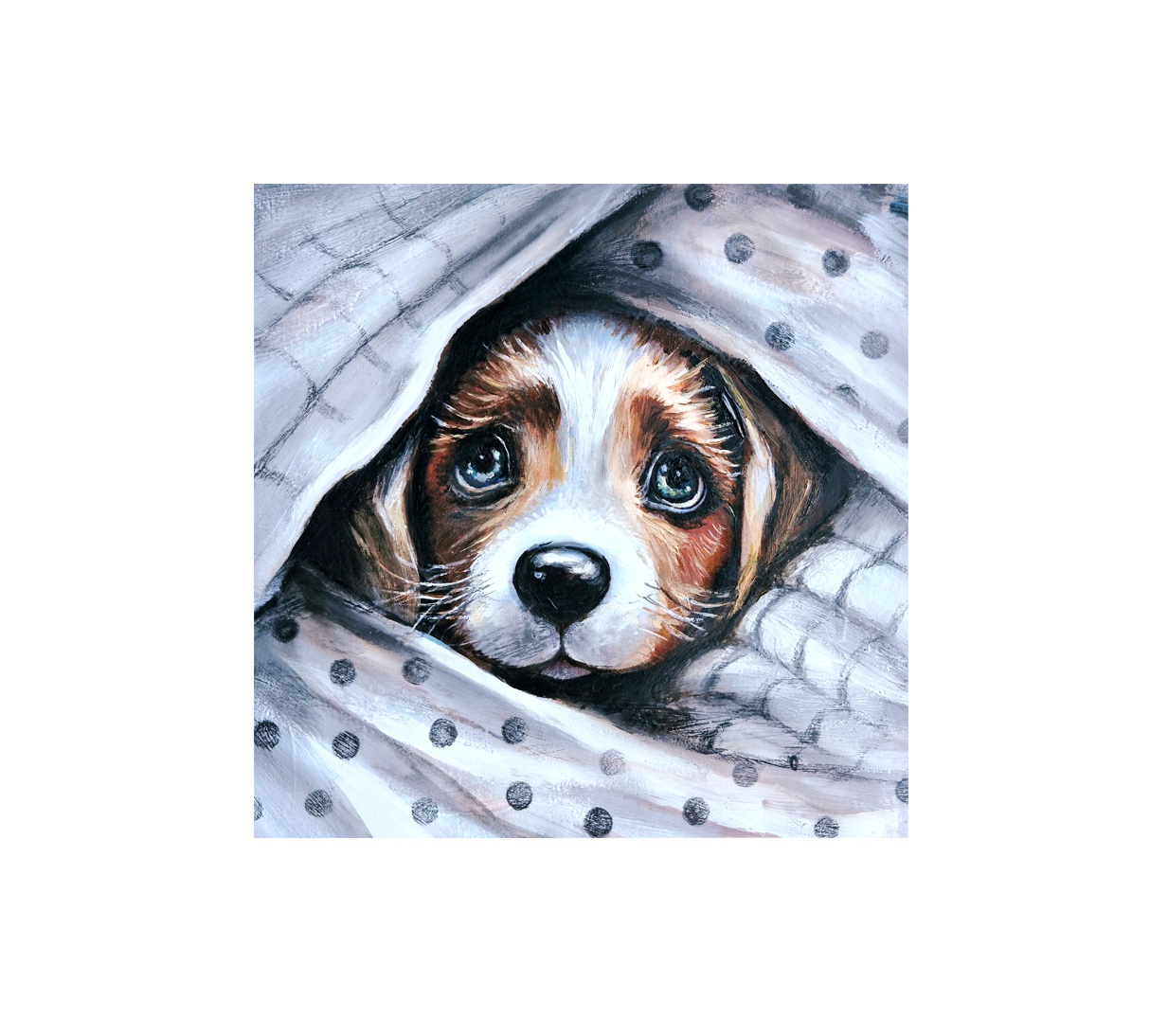 This heart-melting magnet features a sweet puppy tucked under a soft polka-dot blanket, peeking out with big, soulful eyes. The cozy colors and tender expression make this design perfect for bringing warmth and charm to your kitchen, office, or locker. Measuring 2.5 x 2.5 inches and weighing 0.9oz, it’s a delightful gift for dog lovers or anyone who enjoys comforting, cozy artwork.